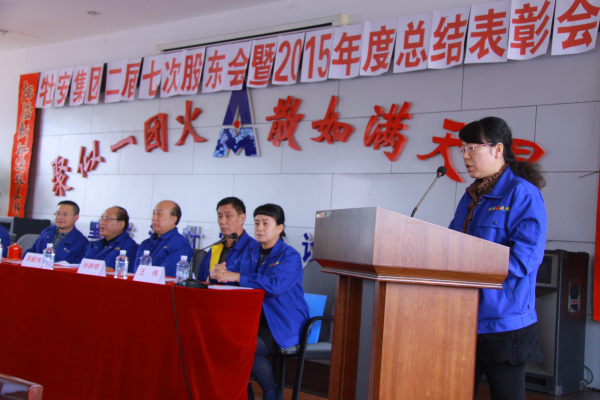4月8日,在公司六樓會議室召開了集團(tuán)公司二屆七次股東會暨2015年度總結(jié)表彰大會。會議由集團(tuán)公司黨委副書記、副總經(jīng)理王偉主持。集團(tuán)公司黨委書記、董事長、總經(jīng)理張秋向股東會做2015年度的工作報告,報告總結(jié)了公司一年來取得的成績和獲得的各項(xiàng)榮譽(yù),指出工作中存在的問題和不足,并在2016年的工作部署中提出新的目標(biāo)及要求。大會對2015年度的先優(yōu)模范和先優(yōu)單位進(jìn)行了表彰。集團(tuán)公司新任領(lǐng)導(dǎo)班子成員向股東會作出了履職承諾。會后辦公室將報告印發(fā)至集團(tuán)下屬各單位、各部門,要求各級管理人員認(rèn)真學(xué)習(xí)領(lǐng)會報告精髓、認(rèn)準(zhǔn)工作目標(biāo)、準(zhǔn)確把握工作方向。務(wù)實(shí)工作,實(shí)現(xiàn)年度工作目標(biāo)。